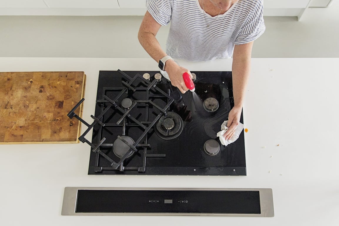 - Wipe the stovetop down with a damp cloth.